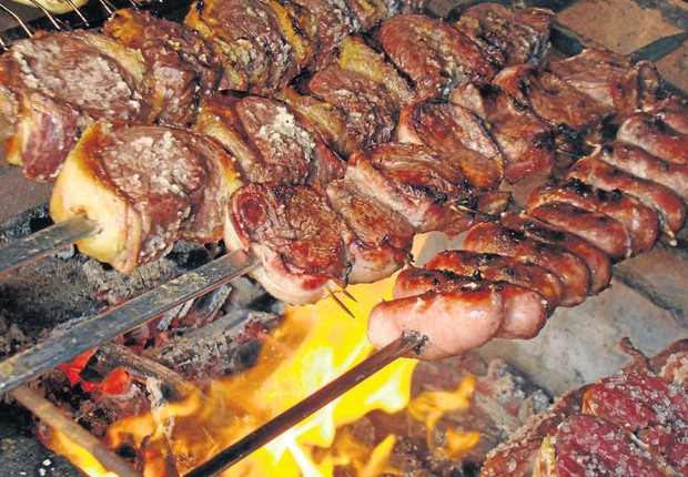 Espetar de pedaço a pedaço no espeto, passar o sal e colocar no fogo, a uma distância de aproximadamente 25 cm.