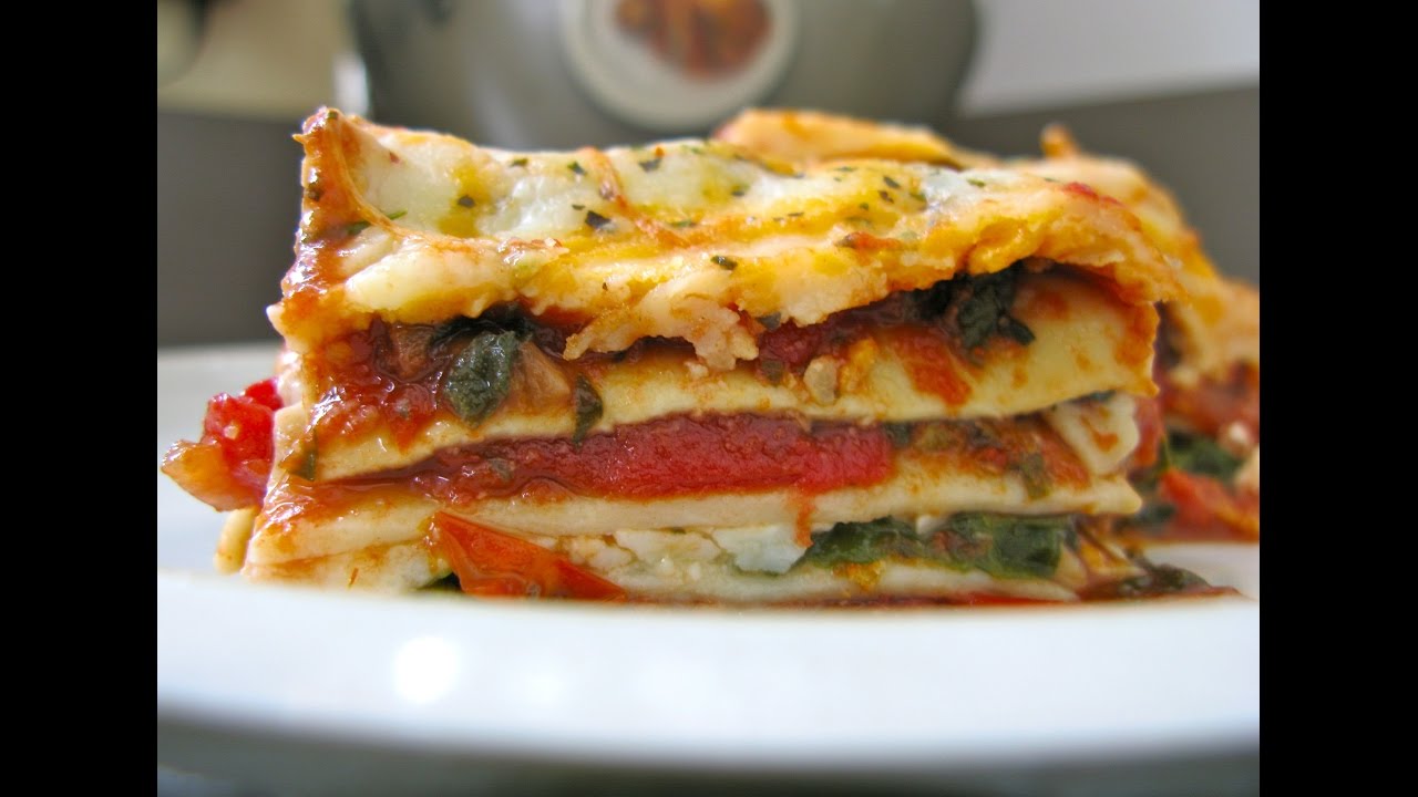 Na última, antes de colocar o molho, coloque as outras folhas da massa da lasanha e o restante do molho por cima.